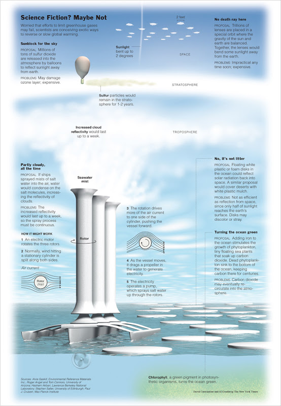 And also this more recent graphic listing five proposals to combat global warming on a gargantuan scale, all neatly and beautifully presented in 800x1155 pixels. It makes you feel as though you no longer need to read New Scientist for further research, although we wouldn't recommend you stop reading the venerable periodical.